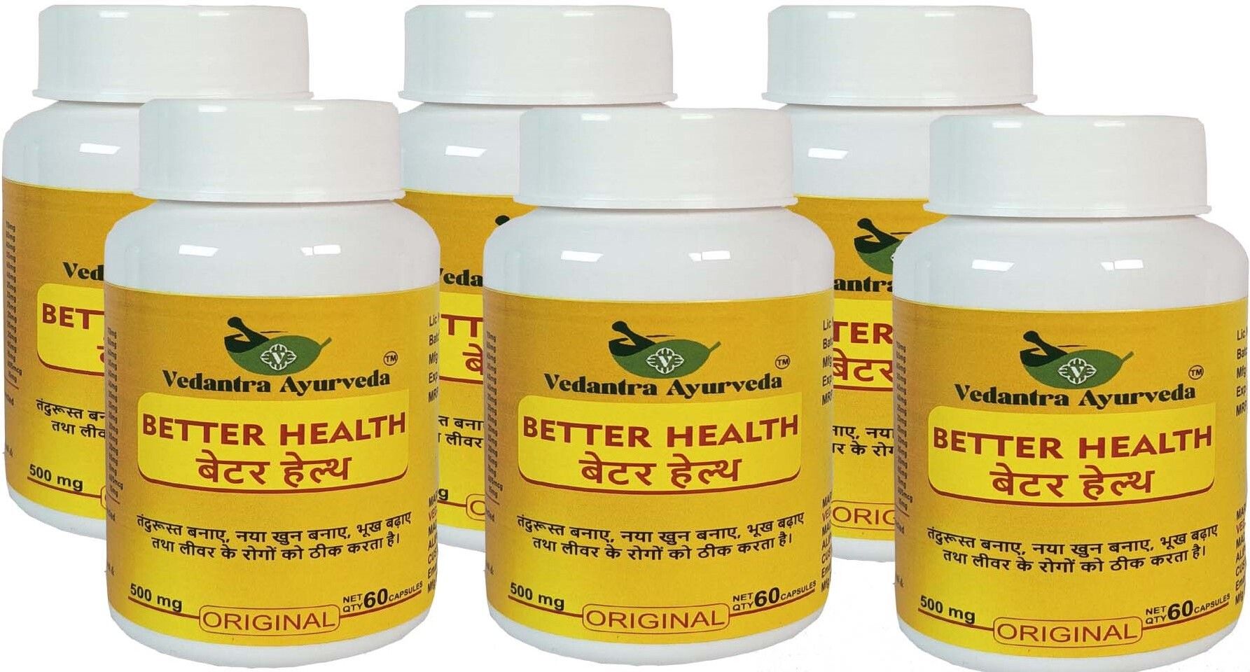 VEDANTRA AYURVEDA Better health CAPSULE FOR WEIGHT GAIN,GENERAL WEAKNESS,BODY BUILDING,LIVER OR DIGESTIVE DISORDER,GASTRIC ,ACIDITY,ANEMIA,NATURAL SOURCE OF VITAMIN,CALCIUM & MINERALS.THIS Health Capsule is an ayurvedic formulation to look over the overall well being of the whole family. It not only increases the appetite allowing the user to gain their desired weight but also improve the functioning of the liver for proper food digestion.