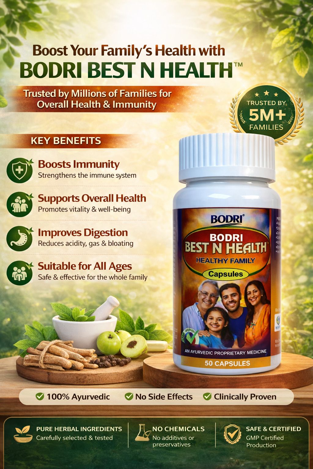 This Capsules is a powerful Ayurvedic proprietary formulation enriched with the goodness of natural ingredients.This Capsule supports overall family health by boosting immunity, improving digestion, increasing energy levels, and helping reduce tiredness caused by daily stress.This helps maintain wellness, supports metabolic functions, and promotes vitality throughout the day.