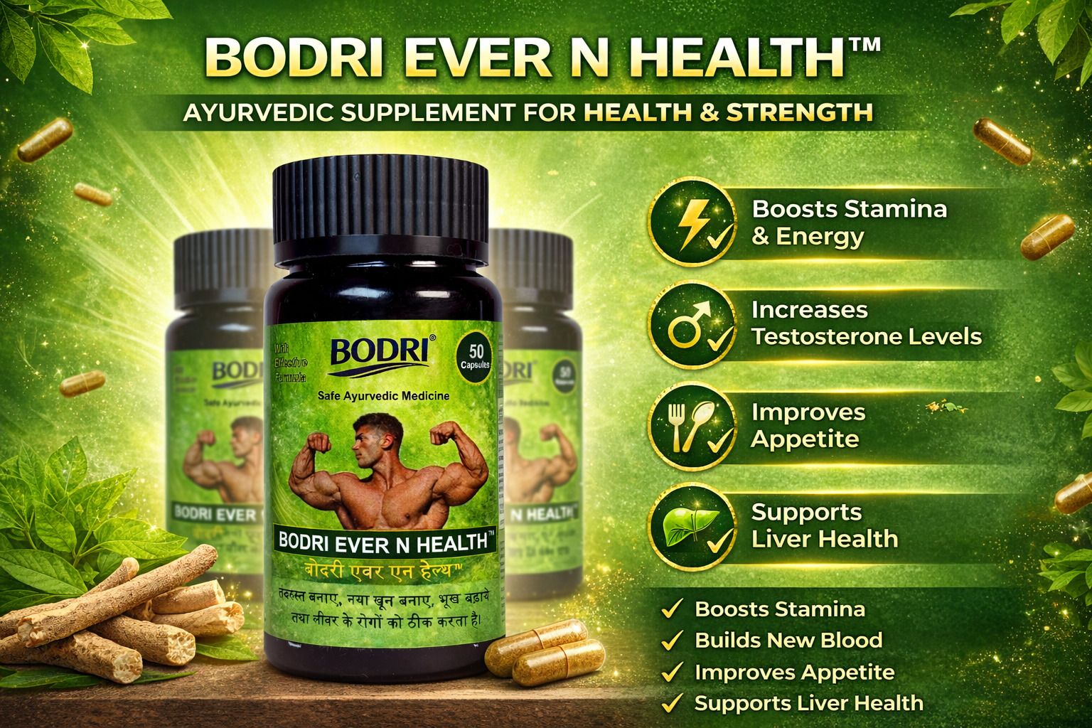 Muscle activation support Helps in improving body strength and muscle activity Supports liver & digestive health Boosts immunity Helps enhance the body’s natural defense system