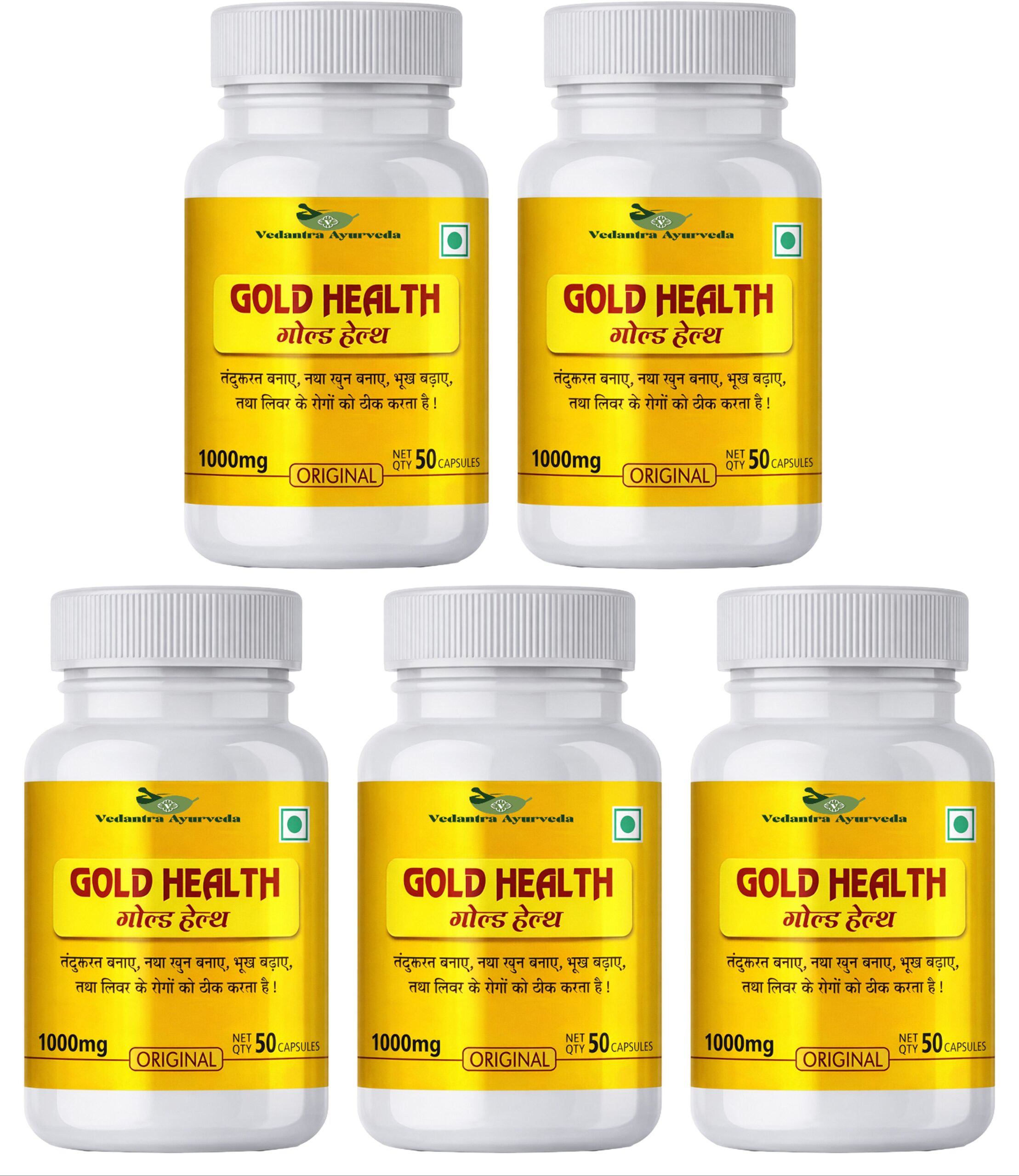 GOLD HEALTH Capsules is a powerful Ayurvedic proprietary formulation enriched with the goodness of natural ingredients.This Capsule supports overall family health by boosting immunity, improving digestion, increasing energy levels, and helping reduce tiredness caused by daily stress.GOLD HEALTH helps maintain wellness, supports metabolic functions, and promotes vitality throughout the day.