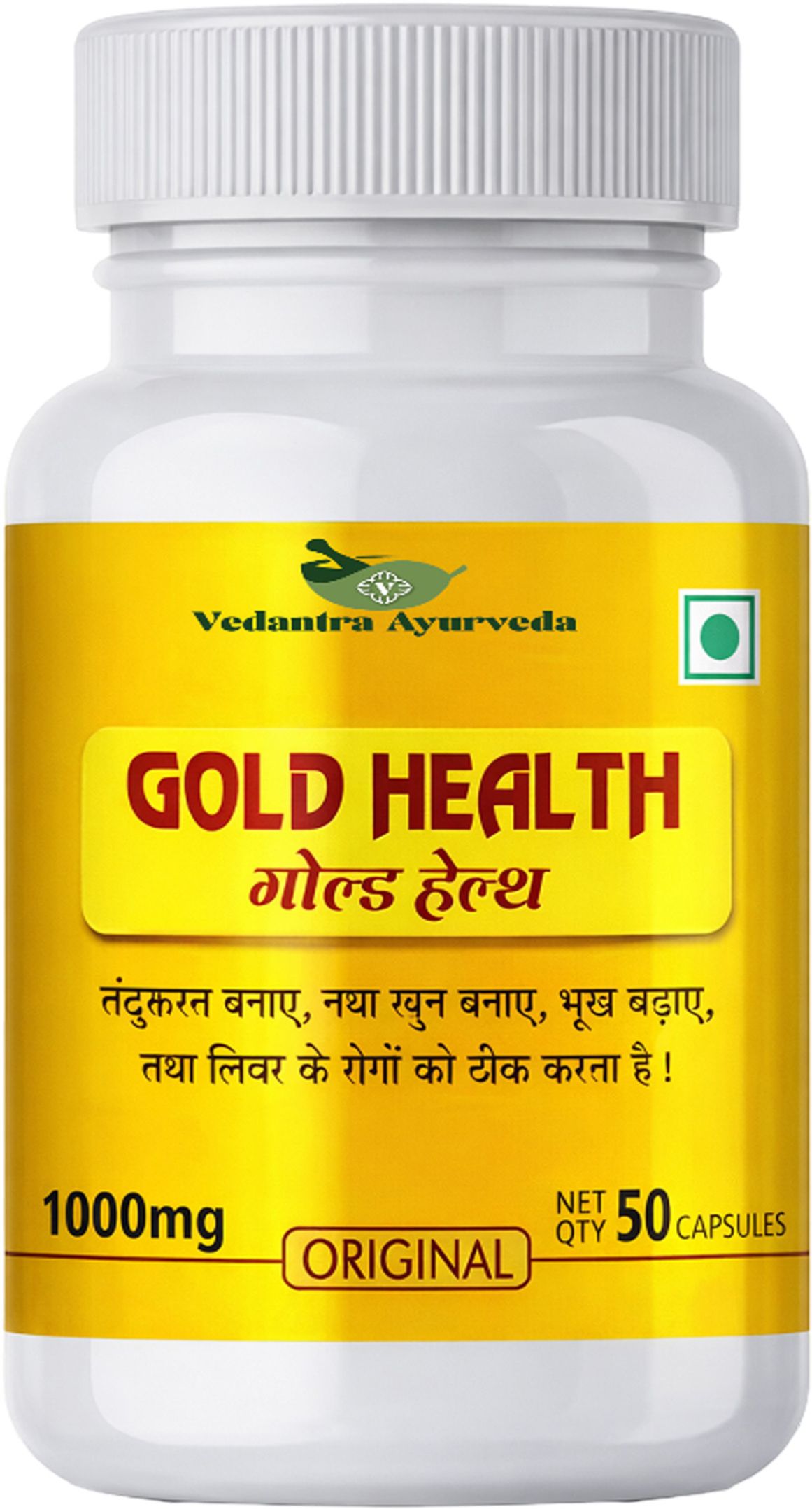 GOLD HEALTH Capsules is a powerful Ayurvedic proprietary formulation enriched with the goodness of natural ingredients.This Capsule supports overall family health by boosting immunity, improving digestion, increasing energy levels, and helping reduce tiredness caused by daily stress.GOLD HEALTH helps maintain wellness, supports metabolic functions, and promotes vitality throughout the day.